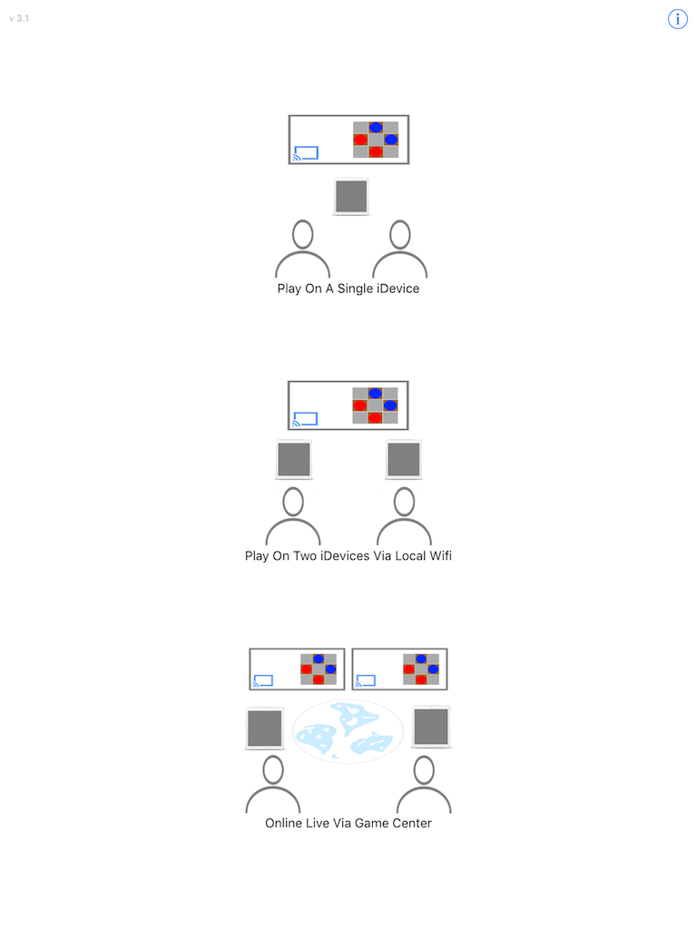 Game mode 1: - Play On A Single iDevice - Two players play using a single iDevice.